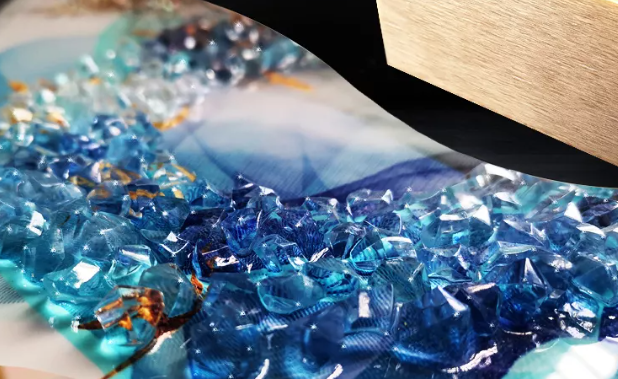 其表面具有晶瑩剔透的立體感,表現形式新穎,更顯檔次與尊貴,這是傳統裝飾畫所不及的,迎合了現代人對生活藝術的追求。