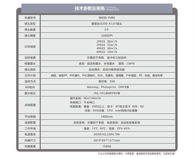 噴頭是寫真機的核心部件,但并不意味著其他配置可以忽略。世紀風3180S的高配置,為其打印效果保駕護航。