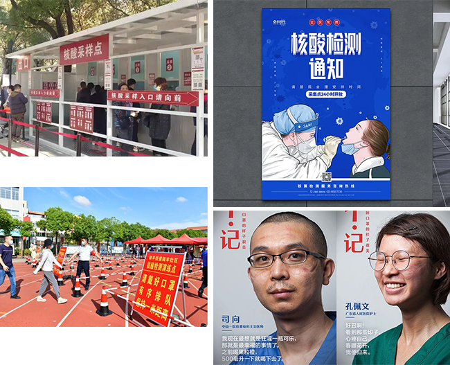 無論是從間距1米到間距2米的提醒,還是抗疫宣傳條幅,又或是核酸檢測知識普及,還有對全國醫(yī)護人員致敬的宣傳海報等等,都離不開廣告人。