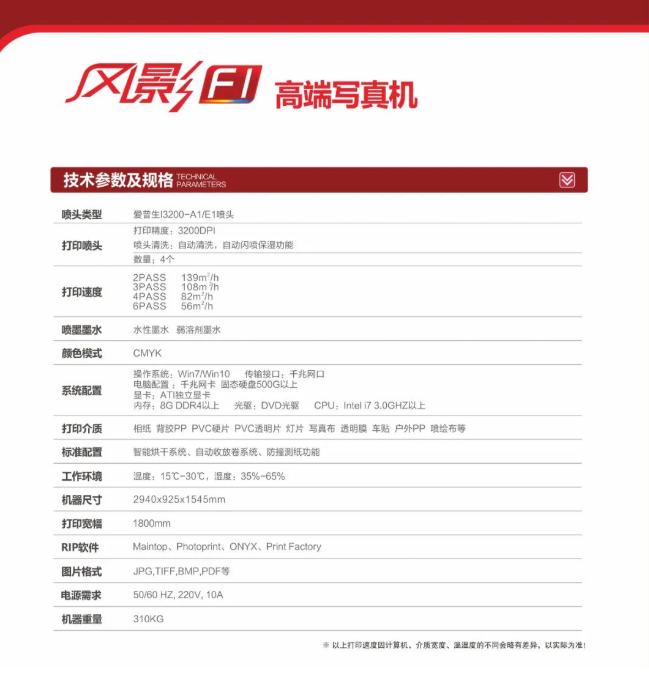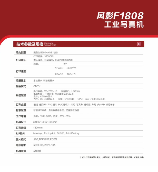 特點:打印寬幅1.8米,雙頭配置,戶內外廣告皆可打印,2022最新升級烘干器配置,出圖精度高。
