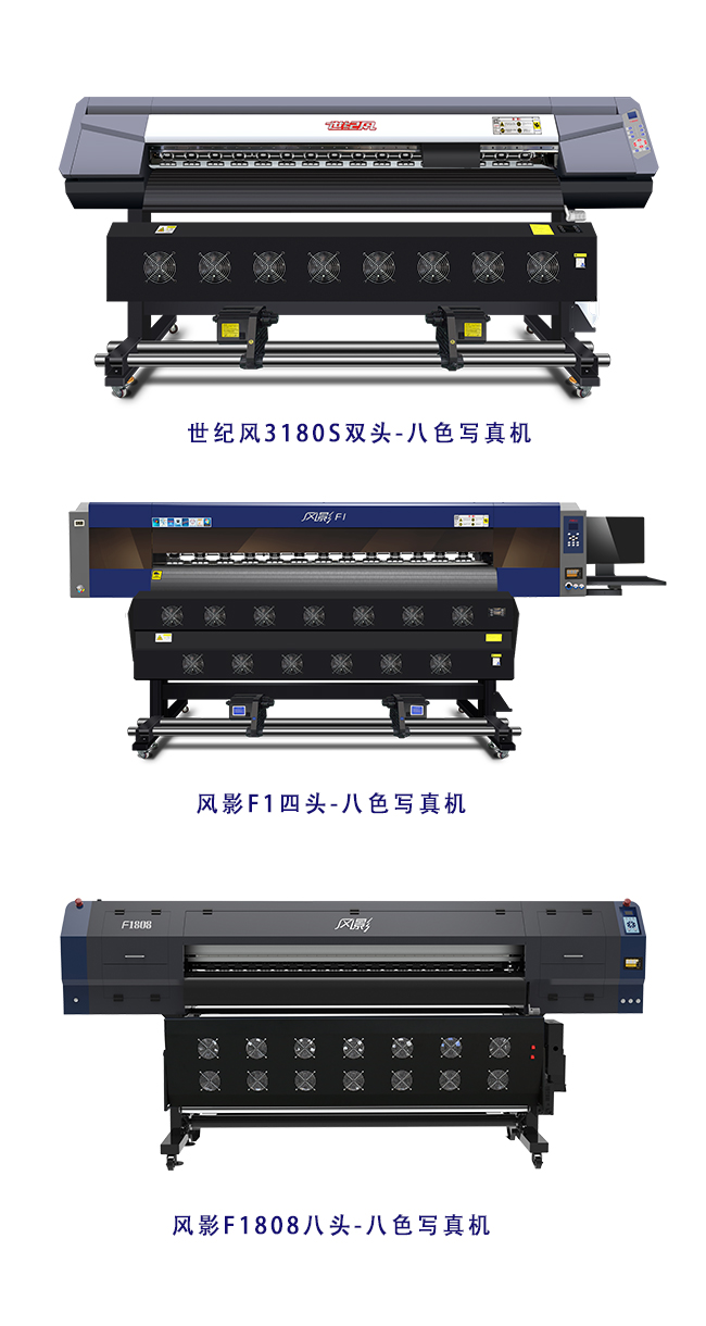 世紀(jì)風(fēng)寫真機(jī)作為行業(yè)的領(lǐng)頭羊,通過長時間的市場調(diào)研,結(jié)合國內(nèi)廣告人的需求,將現(xiàn)有設(shè)備的軟硬件進(jìn)一步升級,研發(fā)出雙頭、四頭以及八頭的八色機(jī)系列機(jī)型。