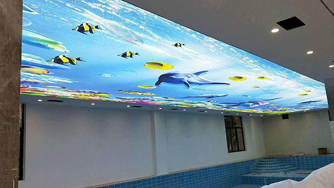 用于裝飾工程的透光膜,又稱軟膜天花,可配合各種燈光系統(如霓虹燈、熒光燈)營造夢幻般的室內燈光效果。同時摒棄了玻璃和有機玻璃的笨重、危險以及小塊拼裝的缺點,已逐步成為新的裝飾亮點,成為透光材料的首選�