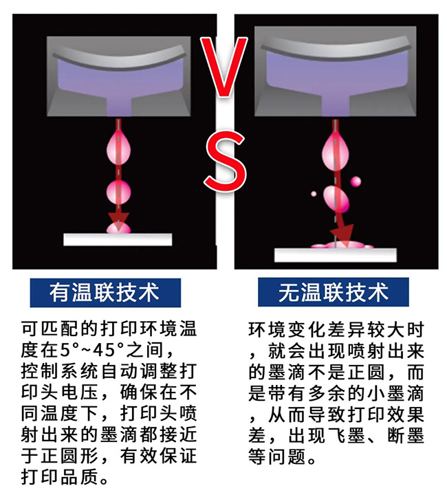 世紀風團隊結合國內廣告人打印習慣、以及使用墨水的特性,研發出最先進的溫聯波形技術,使其驅動波形適應性提升至5℃-45℃,無需空調控溫、墨水或者噴頭加熱,實現開機即打,確保打印品質不受環境影響。