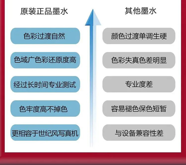 用戶在購買墨水時,建議選擇寫真機廠家原裝墨水,不要貪圖便宜選擇一些雜牌無質量保證的墨水。選用廠家原裝墨水,不僅質量有保證,打圖效果好,而且不會損傷噴頭�
