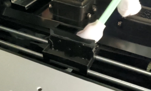 我們的寫真機在工作之后,刮片清理噴頭時在兩側會產生積墨。