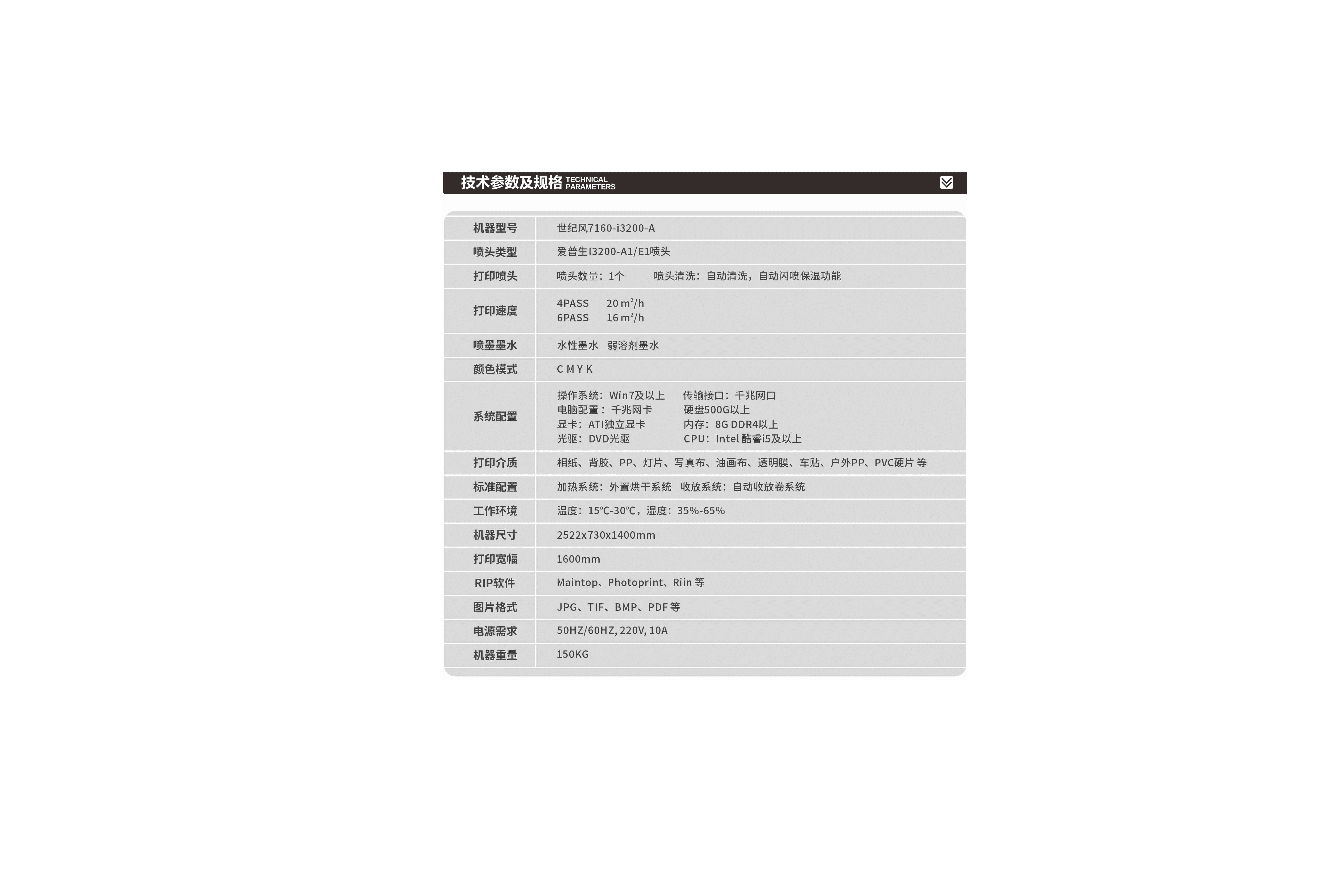 世紀(jì)風(fēng)7160的結(jié)構(gòu)設(shè)計巧妙又實用,打印幅寬1.6米,體型小巧不占地方,整體機身全面采用亞克力材質(zhì),耐候性強耐磨性高的同時,也保證了環(huán)保節(jié)能和安全性,真的物超所值