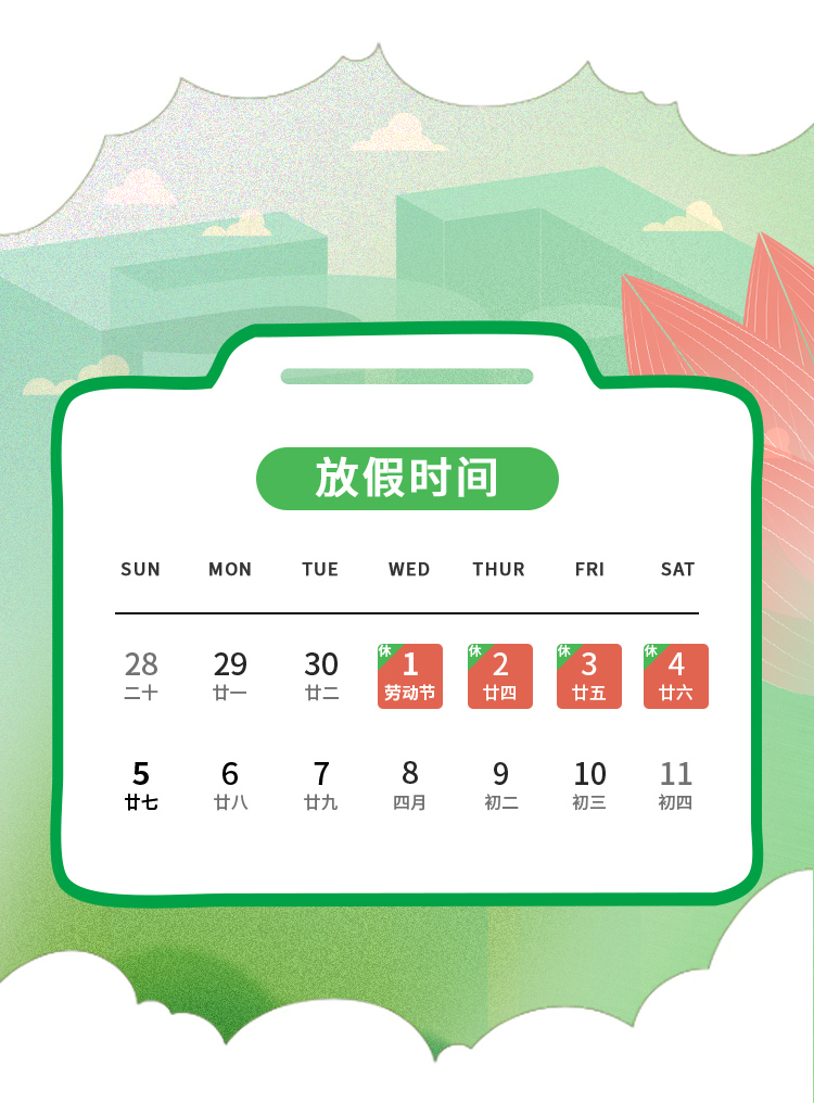根據《國務院辦公廳關于2024年部分節假日安排的通知》,結合公司的實際情況,鄭州新世紀勞動節放假安排如下: