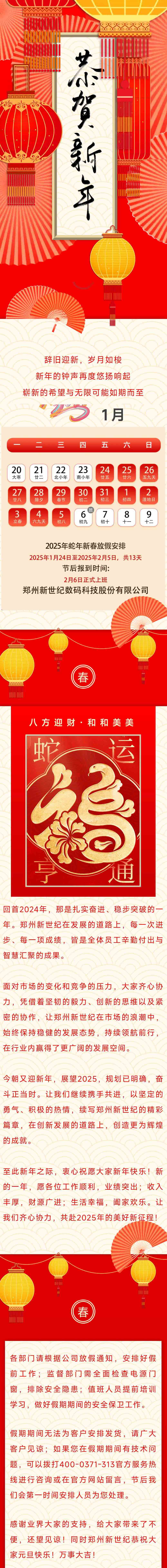 靈蛇迎春 · 鄭州新世紀放假通知來啦! 時間:2025-01-17 10:06:54