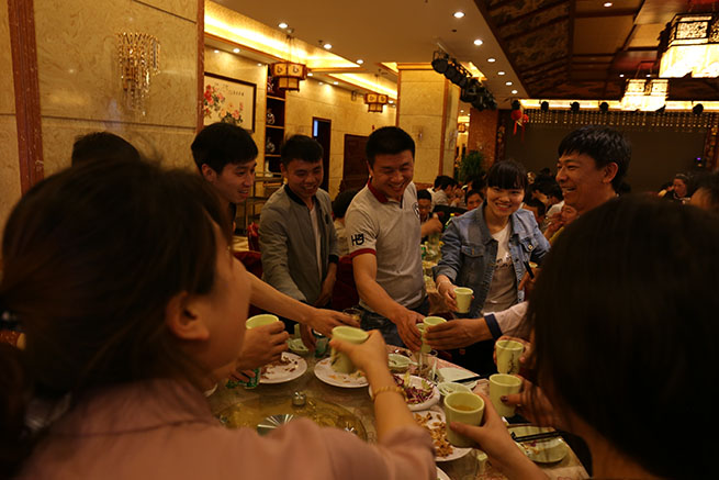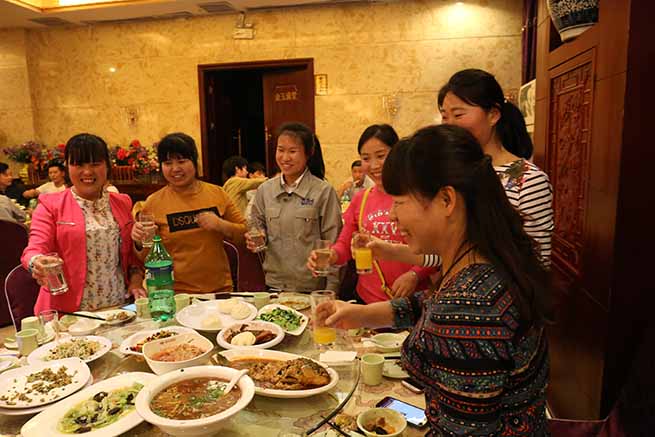 聚餐活動(dòng)上,大家卸去了工作上的嚴(yán)肅心態(tài),有的員工帶著孩子參加,笑容洋溢,仿佛一場輕松地家庭聚會(huì)。在這里沒有老板、沒有管理員,只有兄弟姐妹,聚餐活動(dòng)拉近了新世紀(jì)每位員工間的距離,期待而來,滿意而去。
